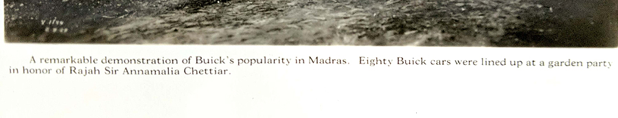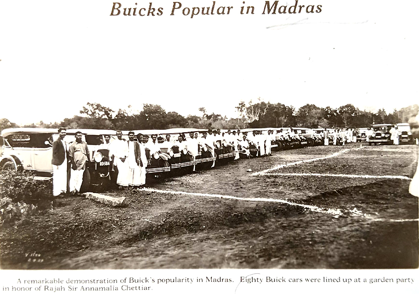 After independence in 1947, the new government gradually stopped the import of foreign consumer goods into India. This was to encourage the growth of the manufacturing sector. Today vintage automobile shows are a big draw in India. Rajah Sir Annamalai Chettiar on whose felicitation guests had arrived in their Buicks shown in the photo.