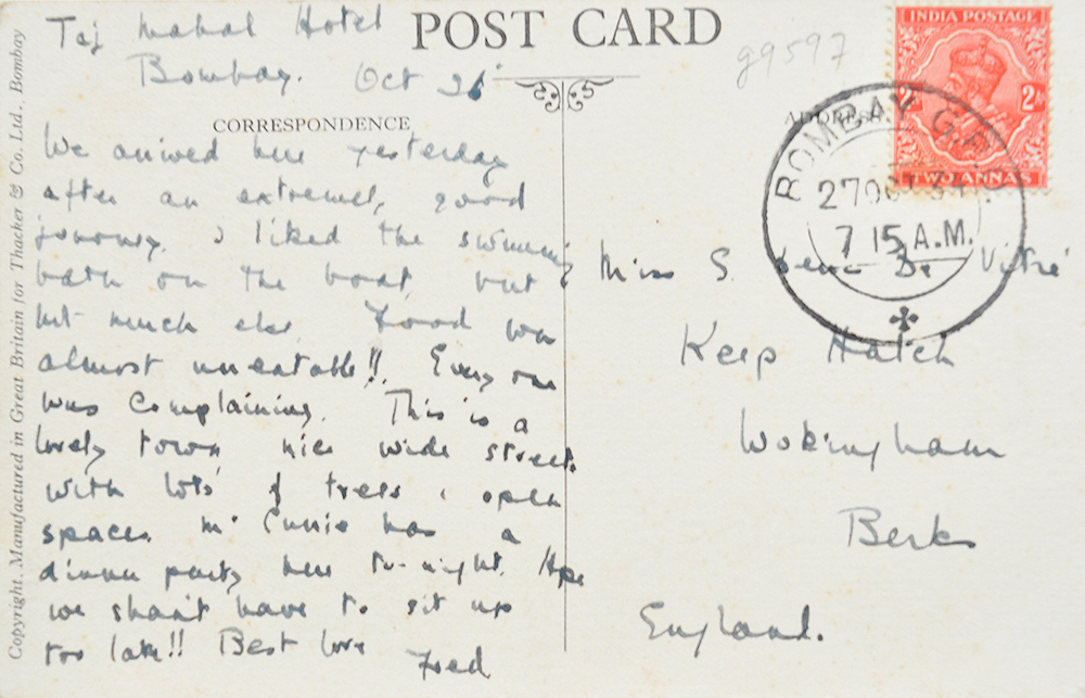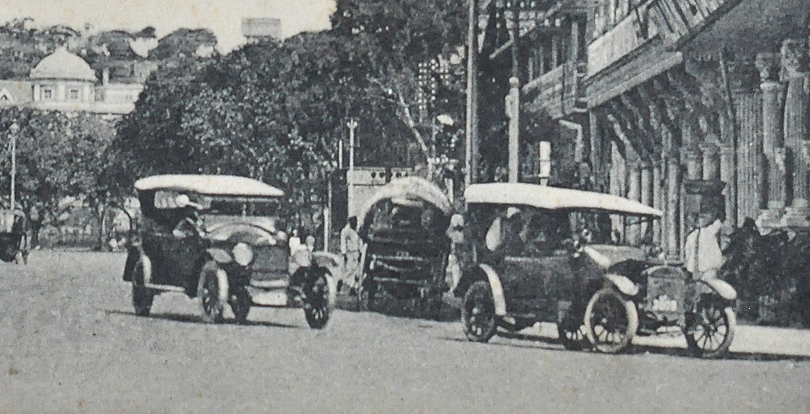 Madras had its first vehicle in 1901. A. J. Yorke, a partner in Parry & Co, owned it. He would take the drive from Adyar to Parry’s (now Parry’s corner) every day. The first postcard shows three British-era cars in front of the Gateway of India, the second is at Chowpatty, the third is near the Town Hall in Mumbai, and the last shows near the Taj Mahal Hotel. Click on the photo for better view.