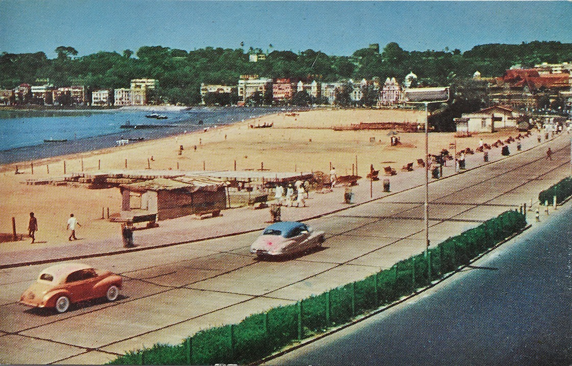 Seven old postcards of different periods showing seven views of Mumbai’s Famous Marine Drive. The Back Bay Reclamation Project of the 1920s changed the face of the once scraggly coastline of the bay. The project metamorphosed the rugged coastline into the now famous Marine Drive of Mumbai (earlier Bombay). That stretches from Chowpatty Beach to Colaba in an arc.