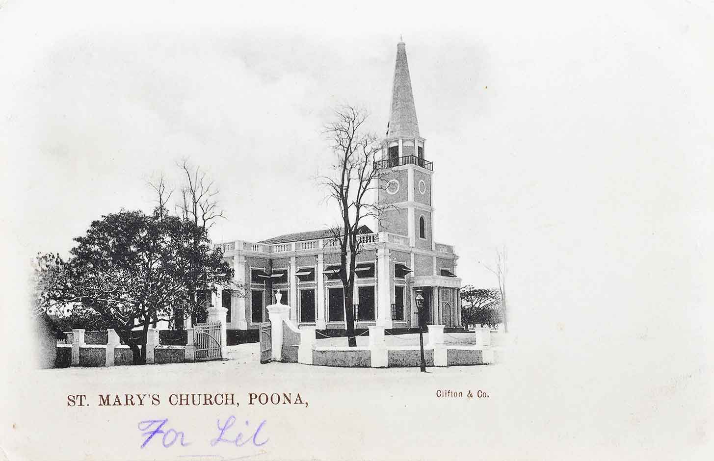 A 1914 photo postcard of St Mary’s Church Poona (Pune), the oldest church in the Deccan region. The British military stationed in Poona after the Anglo-Maratha Wars in 1817 had a need for a worshipful place. Thus St Mary’s Church was founded in 1825 and is today one of the oldest churches in the Deccan region.